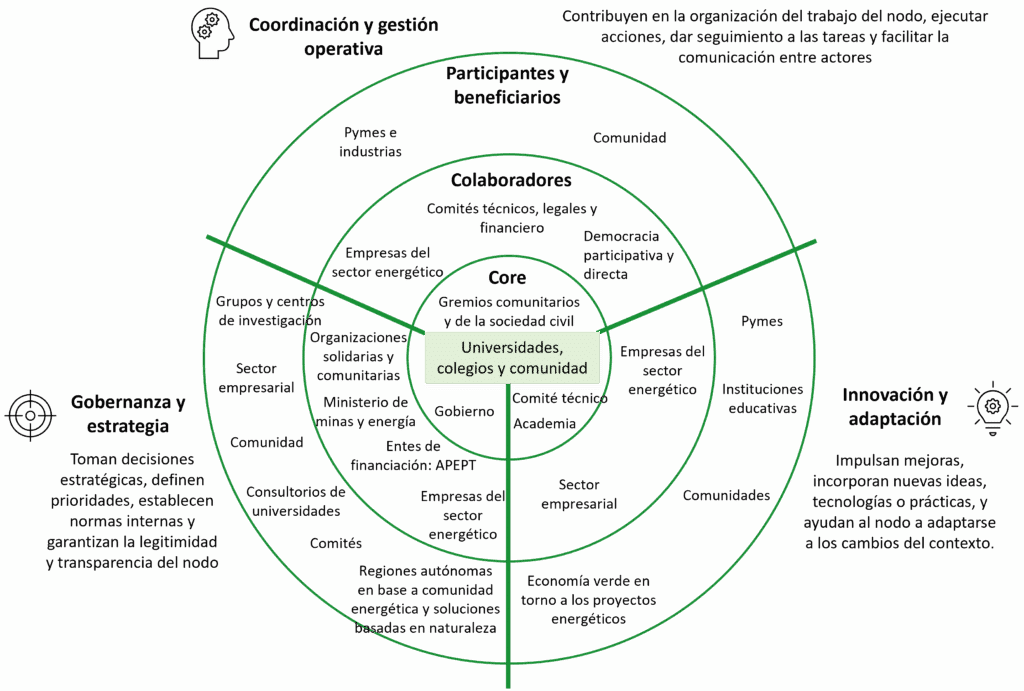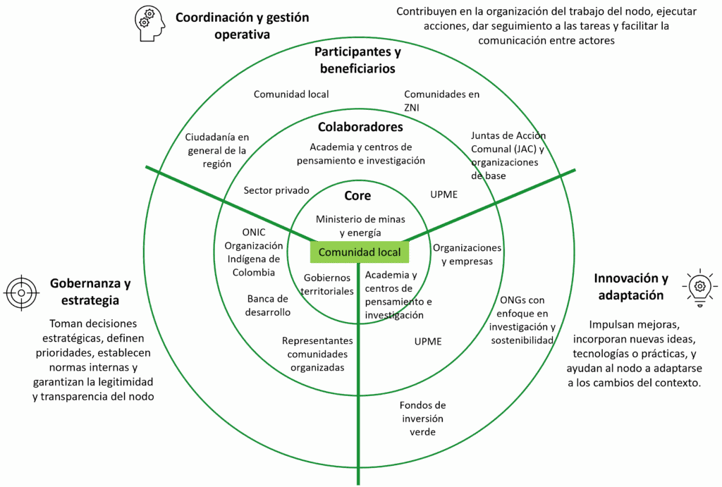 Organizar a los actores participantes en el diplomado a nivel de los territorios para la creación de nodos regionales de soporte para el despliegue de la transición energética para la transformación productiva en los territorios.